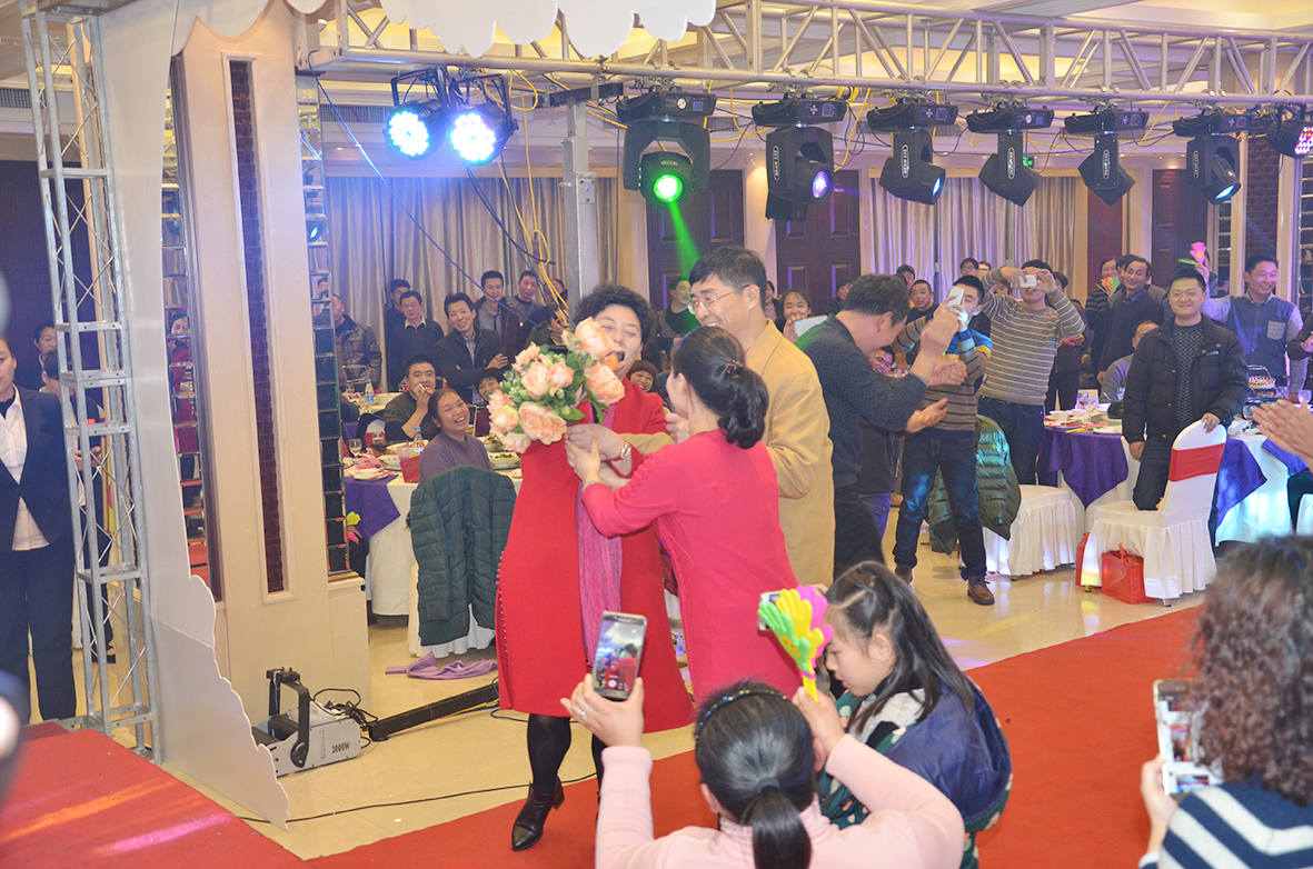 會場入口處,張貼了一幅巨大的簽名海報,每位員工和嘉賓駐足簽名并留影紀(jì)念。會場內(nèi)高朋滿座,燈火輝煌,來自公司業(yè)務(wù)協(xié)作單位嘉賓代表,部分員工家屬和子女代表,公司各部門、車間、班組全體員工總數(shù)200余人歡聚一堂共度佳節(jié)。舞臺中 央的巨型屏幕上正在播放以“一家人一家親”為主題的歡慶視頻,視頻中穿插了福坤人2016取得的主要成就,先進(jìn)集體和個人表彰照片展示,再貫以音樂《開門紅》,渲染了全場歡樂、吉祥、喜慶的氣氛。