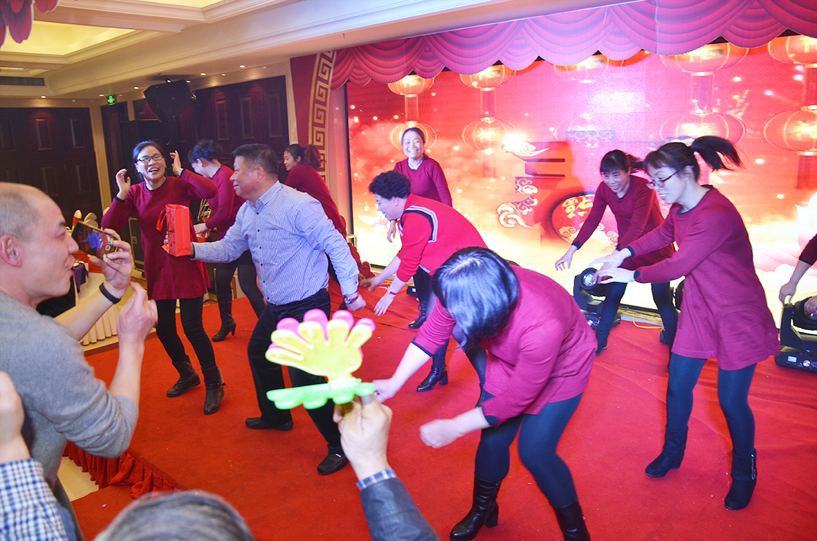 銷售部徐美娟、劉凌為全場觀眾獻(xiàn)上了一首《給你們》,正如歌詞所唱“一定是特別的緣份,才可以一路走來變成了一家人”,如此應(yīng)景的歌曲正是福坤人與人之間,似朋友更似親人的真實寫照;呂燕和高維靜帶來了膾炙人口的《自由飛翔》,全場觀眾跟著熟悉的節(jié)奏放聲齊唱;整場演出高潮迭起,有高亢的《青藏高原》和《天路》、爆笑全場的二人轉(zhuǎn)表演、更有演員帶來的辣歌勁舞;嘉賓代表也即興為我們帶來了京劇《貴妃醉酒》、獨唱《九寨溝之子》,贏得了滿堂喝彩……在演出的間隙,主持人穿插著進(jìn)行了抽 獎和有獎競答,臺上臺下互動熱烈。由董事長洪愛萍領(lǐng)銜的《摘錢舞》將整場晚會的氣氛推向了高 潮,舞臺上穿著紅色衣服的演員們喜笑顏開,跟著音樂舞動全身。員工、嘉賓們紛紛涌上舞臺跟著歡快的節(jié)奏,一起起舞,臺下的觀眾拿出手機(jī)和相機(jī)記錄下這歡快的時刻。整場聯(lián)誼晚會在感恩、真情、歡快、喜慶的氣氛中落下了帷幕。