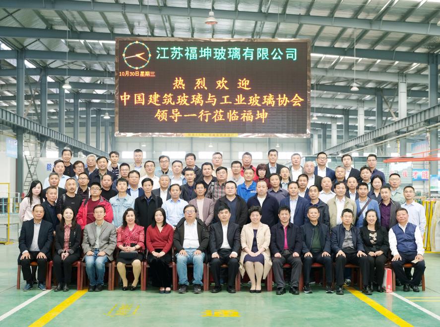 當日下午,與會全體代表來到福坤集團子公司江蘇福坤玻璃有限公司廠區參觀,受到福坤玻璃全體員工的熱烈歡迎。參觀團認真觀看了公司企業文化建設長廊、玻璃深加工流水線、高硼硅防火玻璃生產線、復合灌注防火玻璃生產線及樣品展示。聽取了公司行政副總曾峰的現場講解。眾多領導和嘉賓對公司企業文化建設成果和特色管理充滿濃厚興趣,流連忘返,拍照留念,不 忍離去,許多人打算以后帶隊來我司進行深 層次交流。