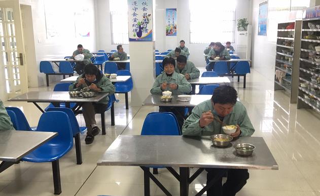 吃飯關 由于公司員工絕大多數是本地人,為了疫情防控的需要,公司調整上班時間,鼓勵員工回家用餐,對因故不回家的員工,實施分批就餐,安排專人打飯打菜,打飯時相隔一米以上距離,就餐時一人一座,保持同向,做到就餐“不照面、不交談”,就餐結束后立即安排專人消毒。