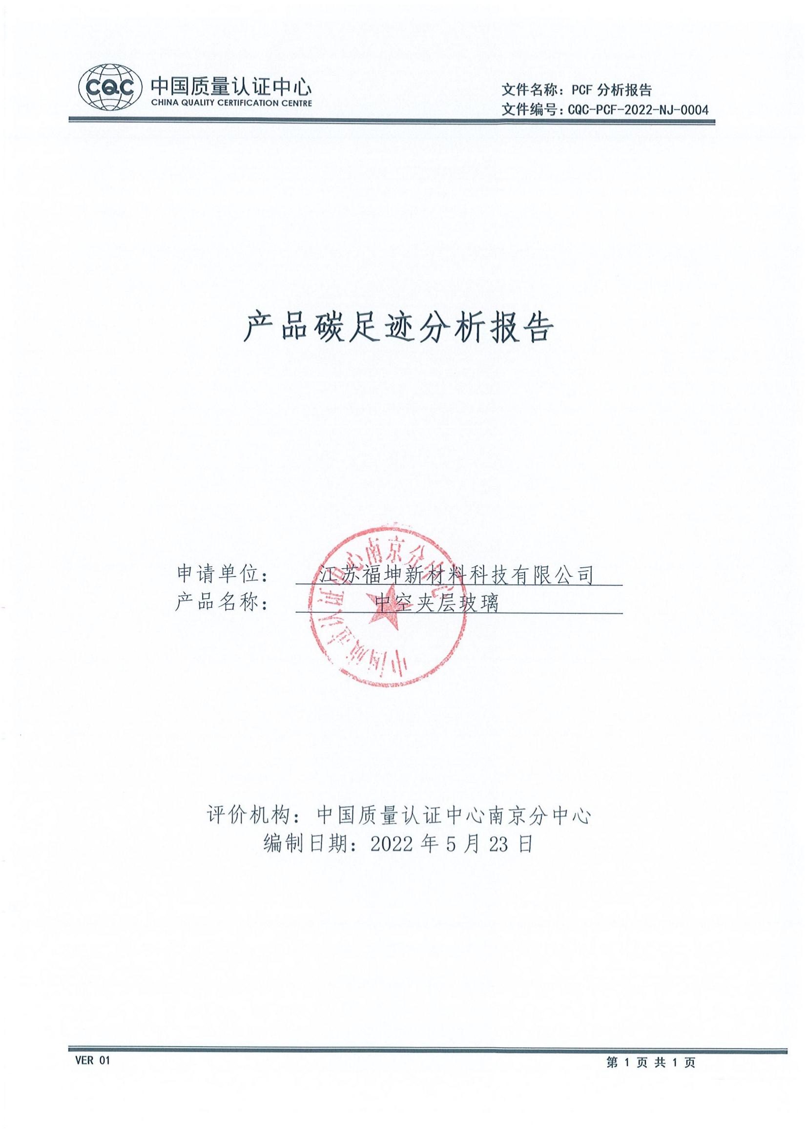 產品碳足跡分析報告及溫室氣體核查陳述報告-公示