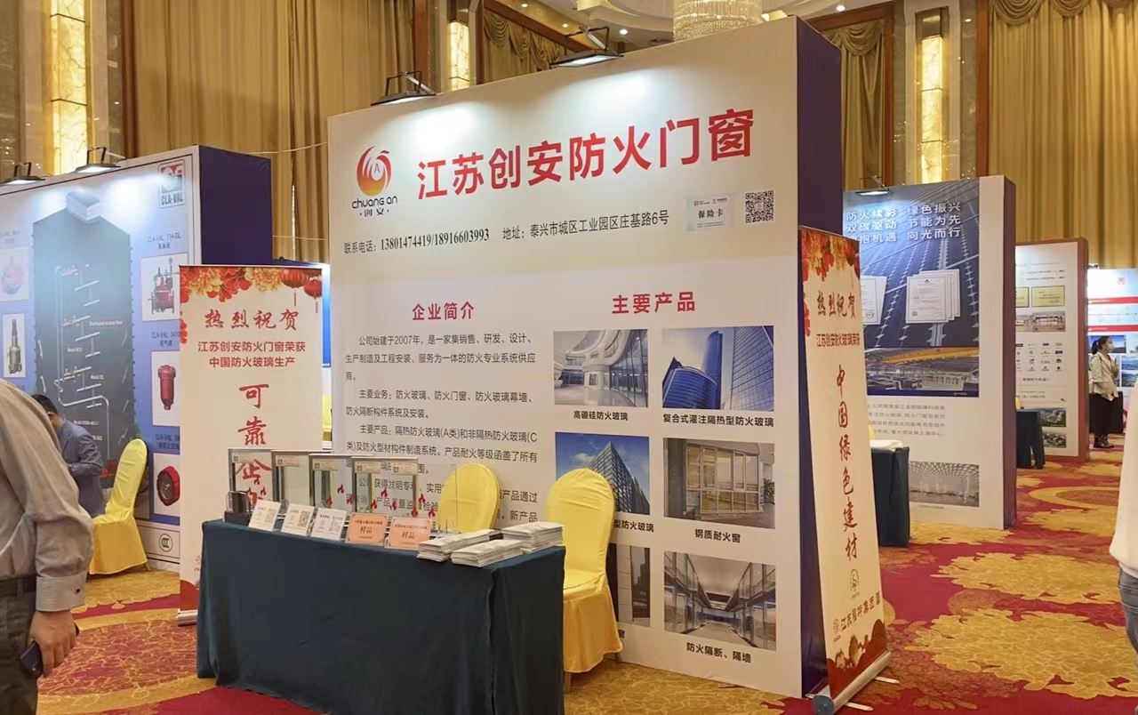 大會同時舉辦建筑消防優秀部品展示宣傳,加強對建筑消防行業新技術、新產品、新工藝的了解,共同推動行業健康發展。創安防火門窗應邀參展,創安展出的防火玻璃單片、復合防火玻璃等新品,吸引了大批與會嘉賓代表現場觀摩,有的人表達了合作的意向。這對宣介創安防火門窗公司,推廣防火新品,提高在行業的知名度具有積極的作用和意義。