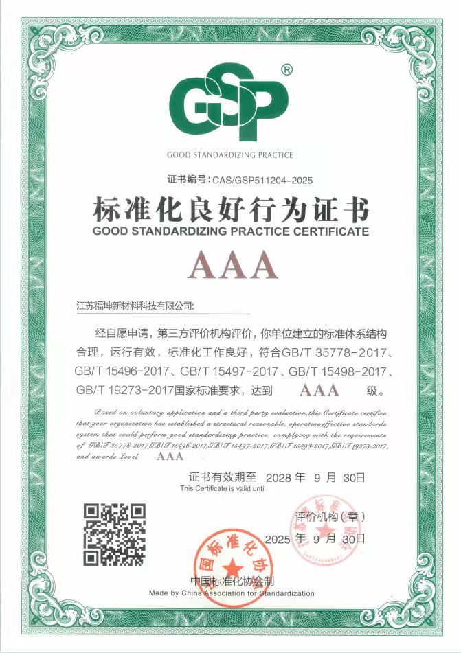 近日,我司成功通過第三方評價,榮獲“AAA級標準化良好行為證書”(證書編號:CAS/GSP511204-2025),標志我司標準化體系建設達到國內先進水平。