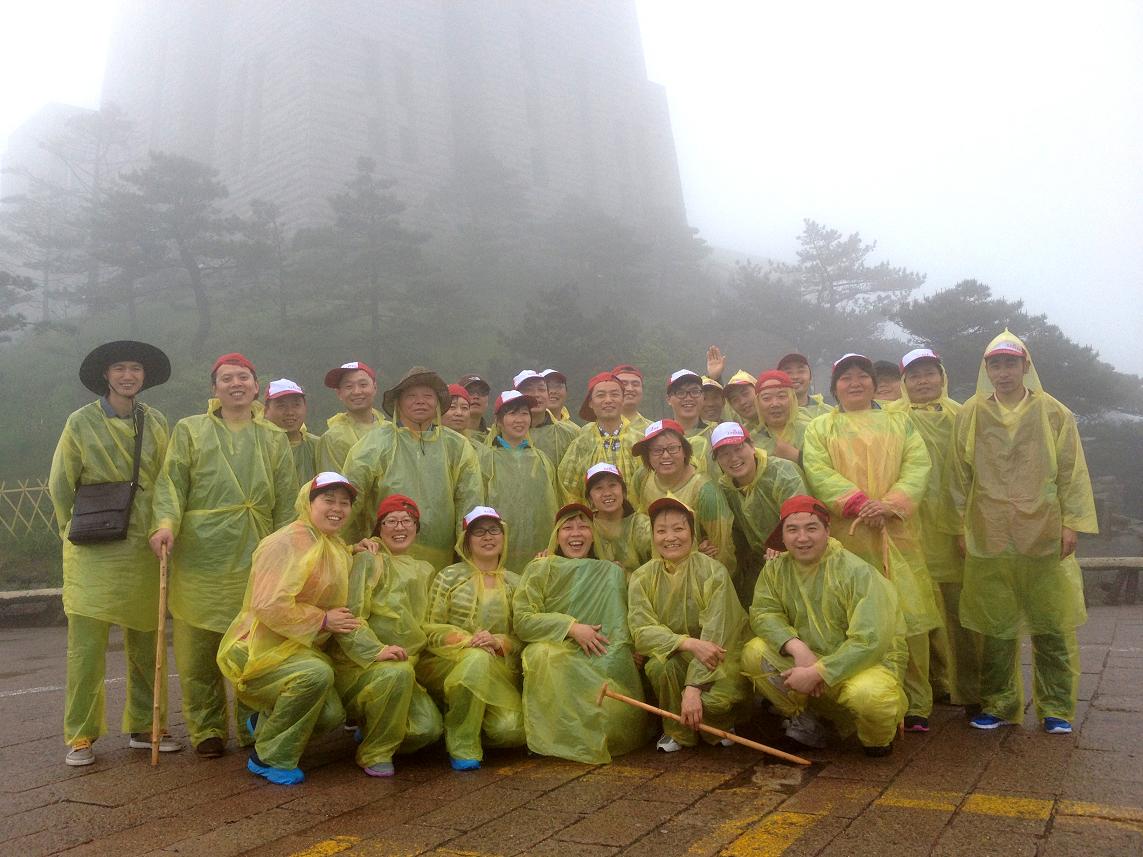 經(jīng)過一晚的住宿休整,5月18日一早,公司一行32人就驅(qū)車來到了黃山腳下。剛下車,天空就淅淅瀝瀝下起了雨,但這絲毫沒有影響到大家登山的熱情。 一路蜿蜒穿行,山路陡峭、地勢險峻,大家相互照應(yīng)著,嘻嘻哈哈逗著樂,倒也不覺得累。 攀至半山腰,雨越下越大,雨水沖刷著巖壁,漫過山路,越過山澗,一路跌宕,匯成山洪,以雷 霆萬鈞、摧枯拉朽之勢奔騰東去。 出于安 全考慮,景區(qū)中止了纜車運行,大家被困在了候車室,渾身濕透、饑寒交加。大家相互安慰,分享著零食和飲料,伴隨著音樂翩然起舞。激 情驅(qū)散了大家壓抑在心頭的焦灼和不安,同時也感 染著在場的其他游客,他們有的自發(fā)加入到我們的舞蹈方陣,有的掏出手機為我們拍照攝像。此刻,福坤精神再次受到大力弘揚和精彩詮釋。 被困近3小時后,雨量漸小,纜車恢復(fù)運行。經(jīng)過又一輪的艱苦跋涉,大家終于登上景區(qū)高峰——光明頂。 興許是老天也為我們的無畏和執(zhí)著所感動,就在我們站在山頂極目遠眺的時候,云霧漸漸飄散開,遠處的山頭宛如半抱琵琶、欲說還羞的佳人隱約顯露出曼妙身姿。大家苦盡甘來,終于在黃山之巔品味到了“一覽眾山小”的壯闊美景。 無限風光在頂 峰,勝利只屬于勇者。黃山,讓我們領(lǐng)略了它的雄壯宏偉;我們,讓黃山見證了“團結(jié)拼搏,勇爭前沿”的福坤精神!